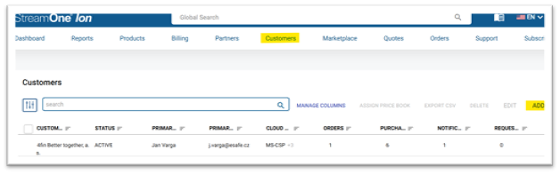 1️⃣ Založení nového zákazníka v StreamOne ION