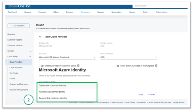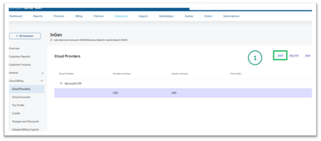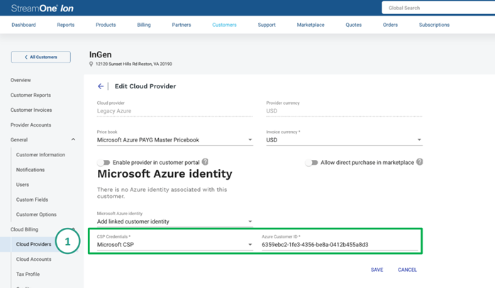 - U zákazníka otevřete Cloud Billing → Cloud providers a zvolte Microsoft CSP