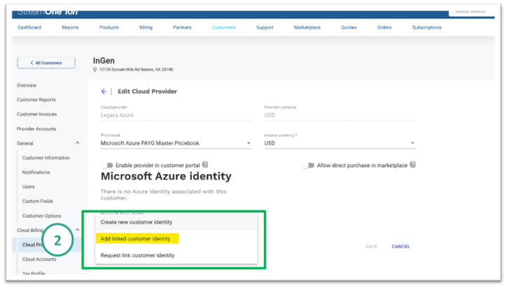 - V části Microsoft Azure Identity vyberte Add linked Customer Identity