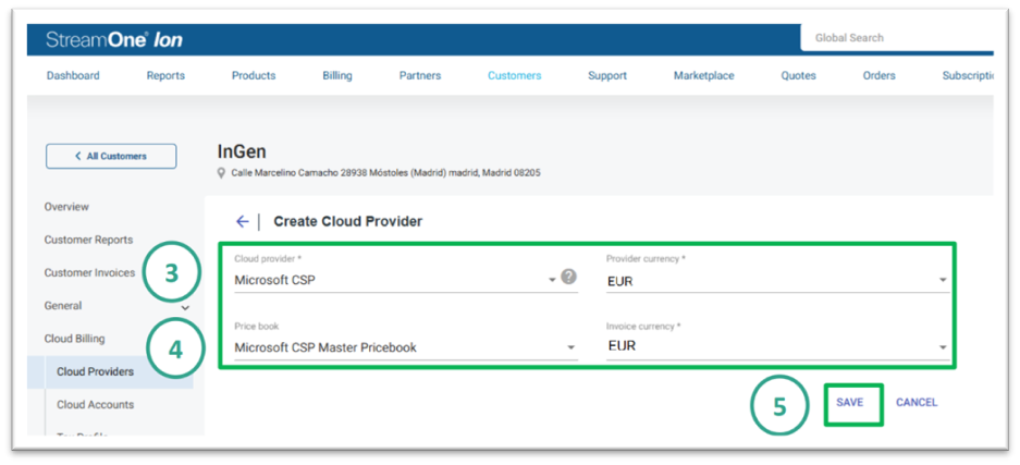 Po vytvoření zákazníka přidejte Microsoft CSP jako cloud provider: