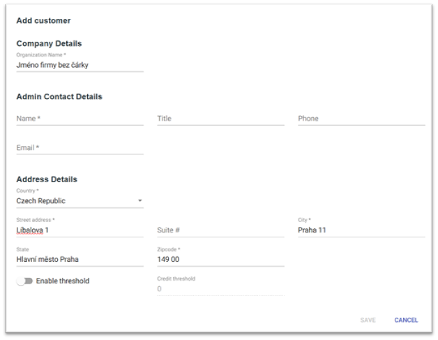- Vyplňte údaje o koncovém zákazníkovi