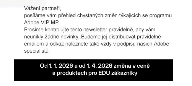 Důležité změny v produktech Adobe VIP MP